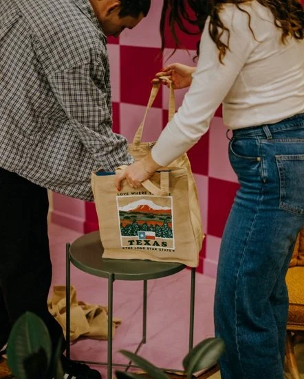 We bought a garage full of bags and started selling them at farmers markets, gift shops and local grocery stores. Then we began getting requests from businesses, churches and organizations to make custom bags. Our bags can be found in stores throughout the American West and now we are branching out to other areas of the country.
